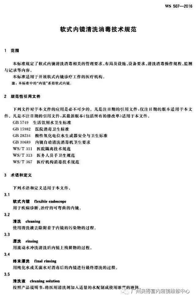 《软式内镜清洗消毒技术规范》